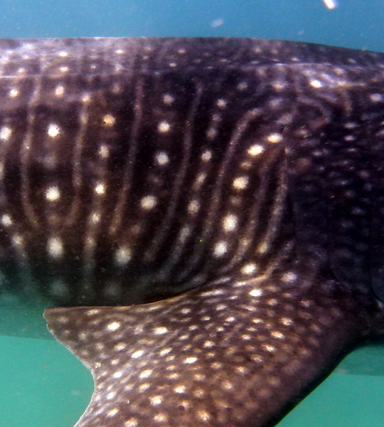 Noticeable scarring: Bottom of tail fin missing