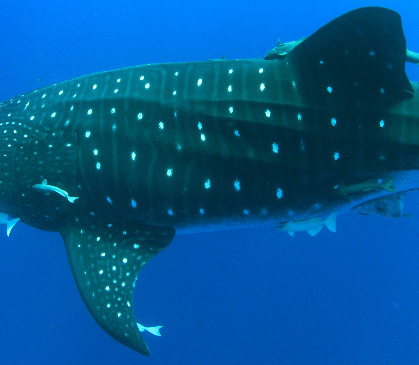 Whale Shark��s are seldom encountered in the Azores. However this year they have been spotted in 2 of the Islands (Santa Maria and S��o Miguel)almost every day in the last 2 months. By the number of encounters with whale watching and fishing boats I can estimate at least 20 in Santa Maria and a undetermened larger number in S��o Miguel. The Tuna Fishermen are the most reliable source of information, they fish the great quantities of tuna that swim underneath the whale shark. According to local fisherman the number of Whale Sharks are around 200. I, personaly, cannot confirm these numbers, however I can confirm at least 7 different sightings on the same day.